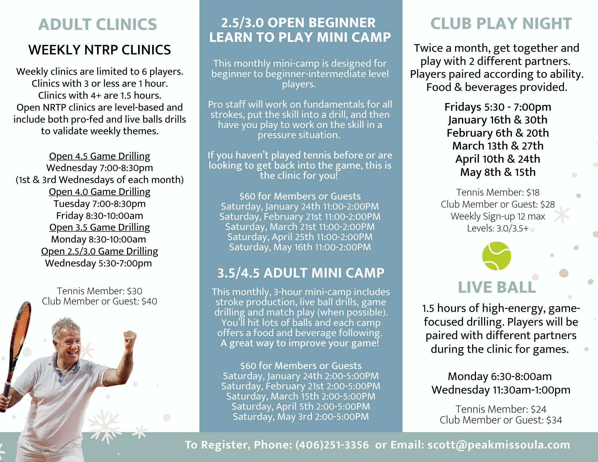 For info or questions, contact Scott Potter, Tennis Director, at (406) 251-3356 ext 11.